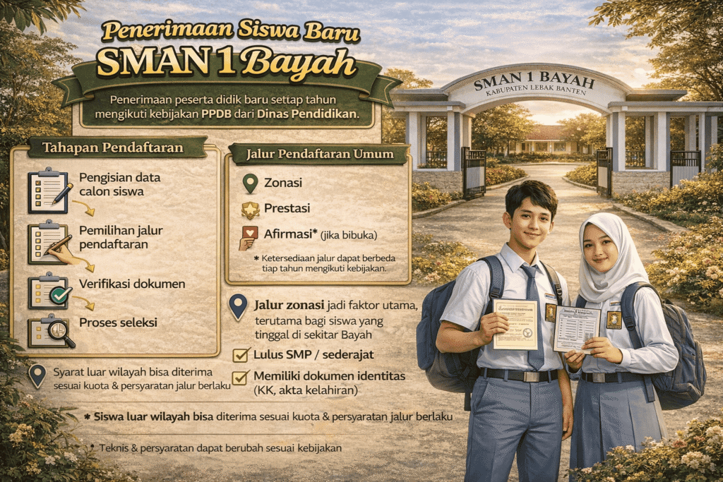 Untuk mendaftar ke SMAN 1 Bayah, calon siswa umumnya harus memenuhi beberapa persyaratan dasar: